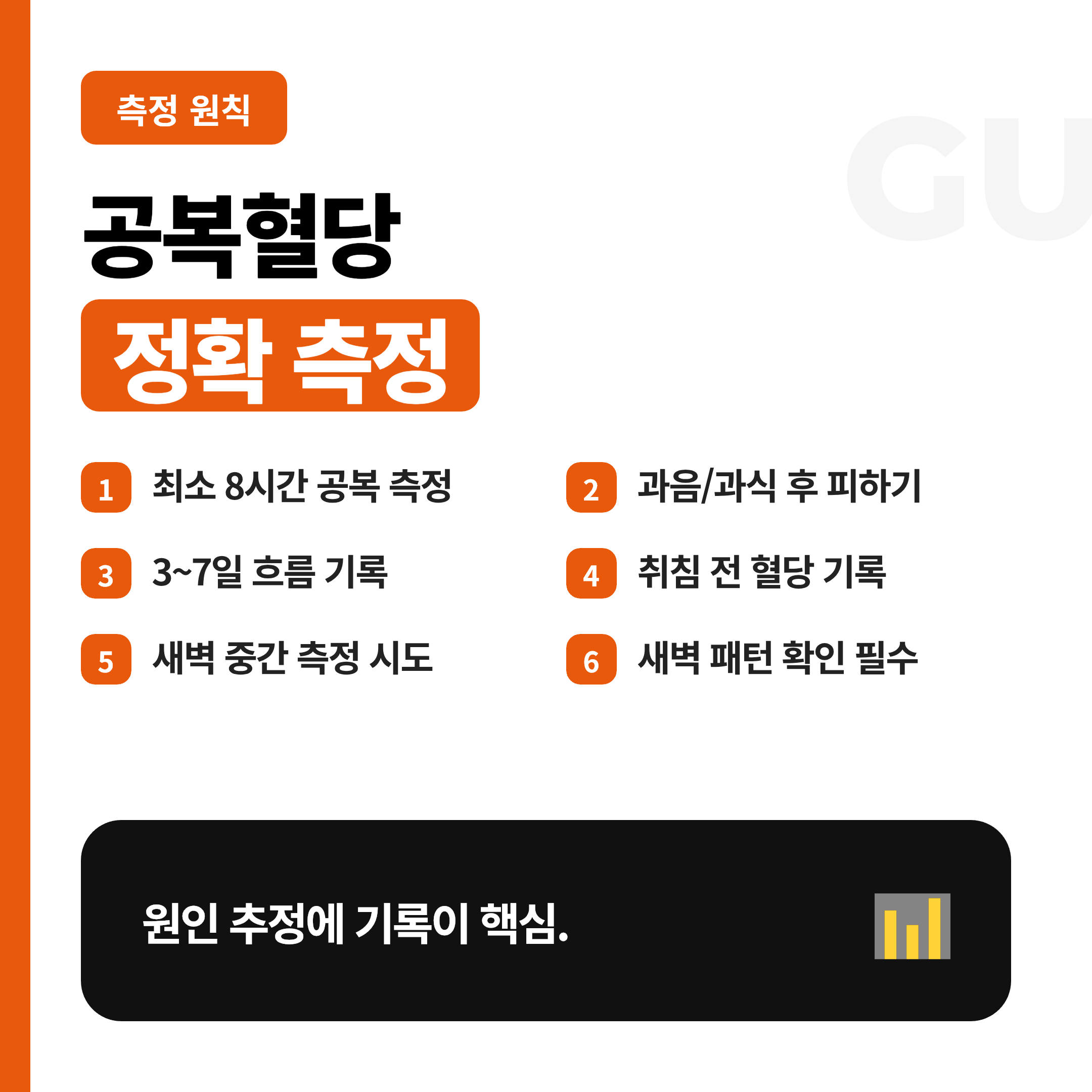 공복혈당 관리는 정확히 재는 습관이 반이에요. 집에서 잴 때는 다음 원칙을 지켜주세요.