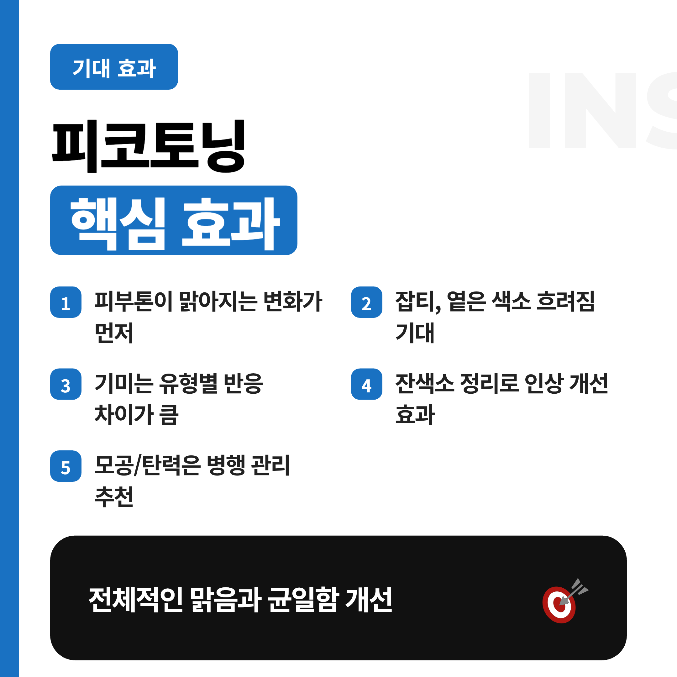 또한 피코토닝은 단독으로도 도움이 되지만, 피부 상태에 따라 진정 관리, 보습 강화, 미백 성분 케어를 함께 잡아주면 체감이 커질 수 있어요.