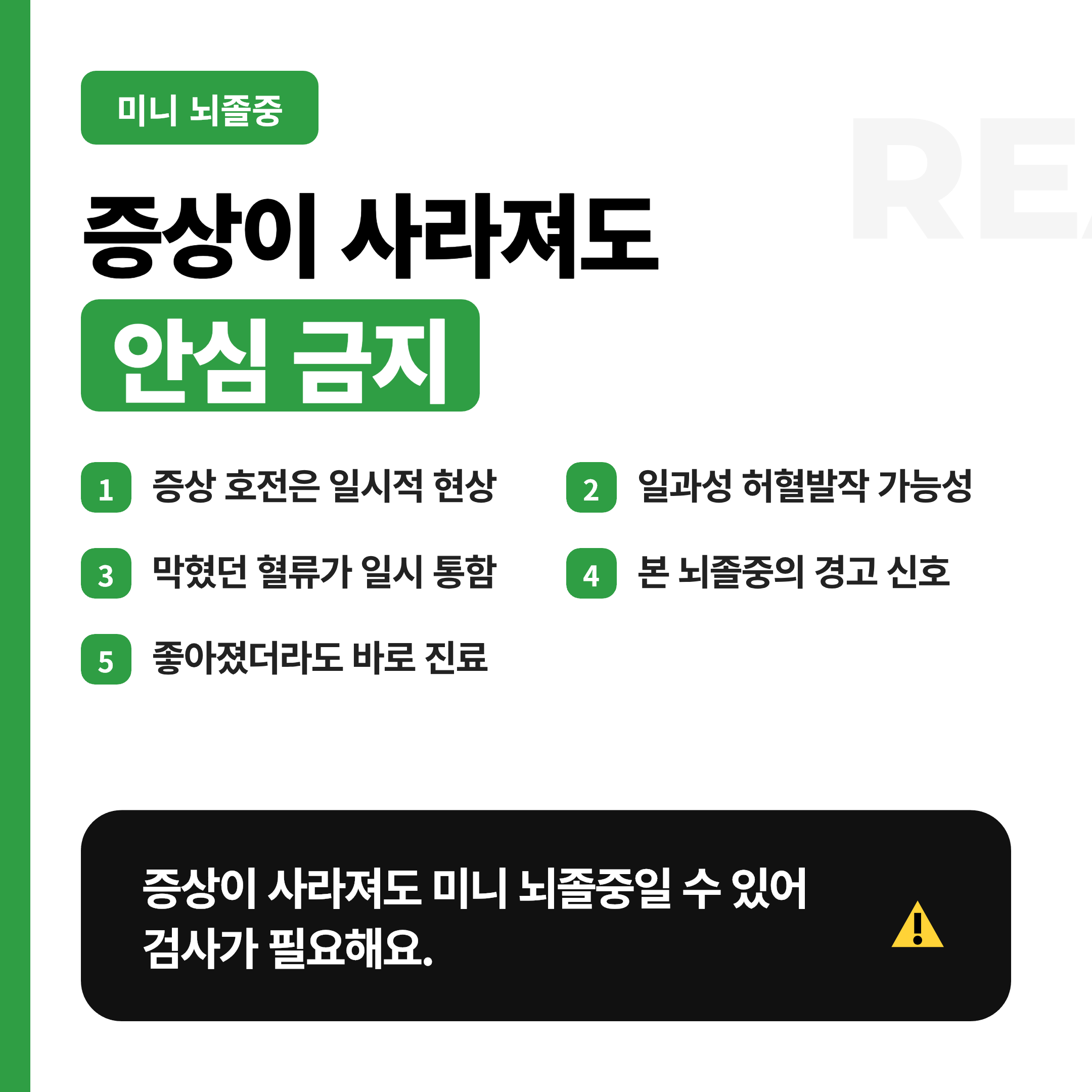 중요한 포인트는 이 상태가 본 뇌졸중의 경고가 될 수 있다는 점이에요. 다시 같은 증상이 오거나 더 큰 뇌졸중으로 이어질 가능성이 있어요.