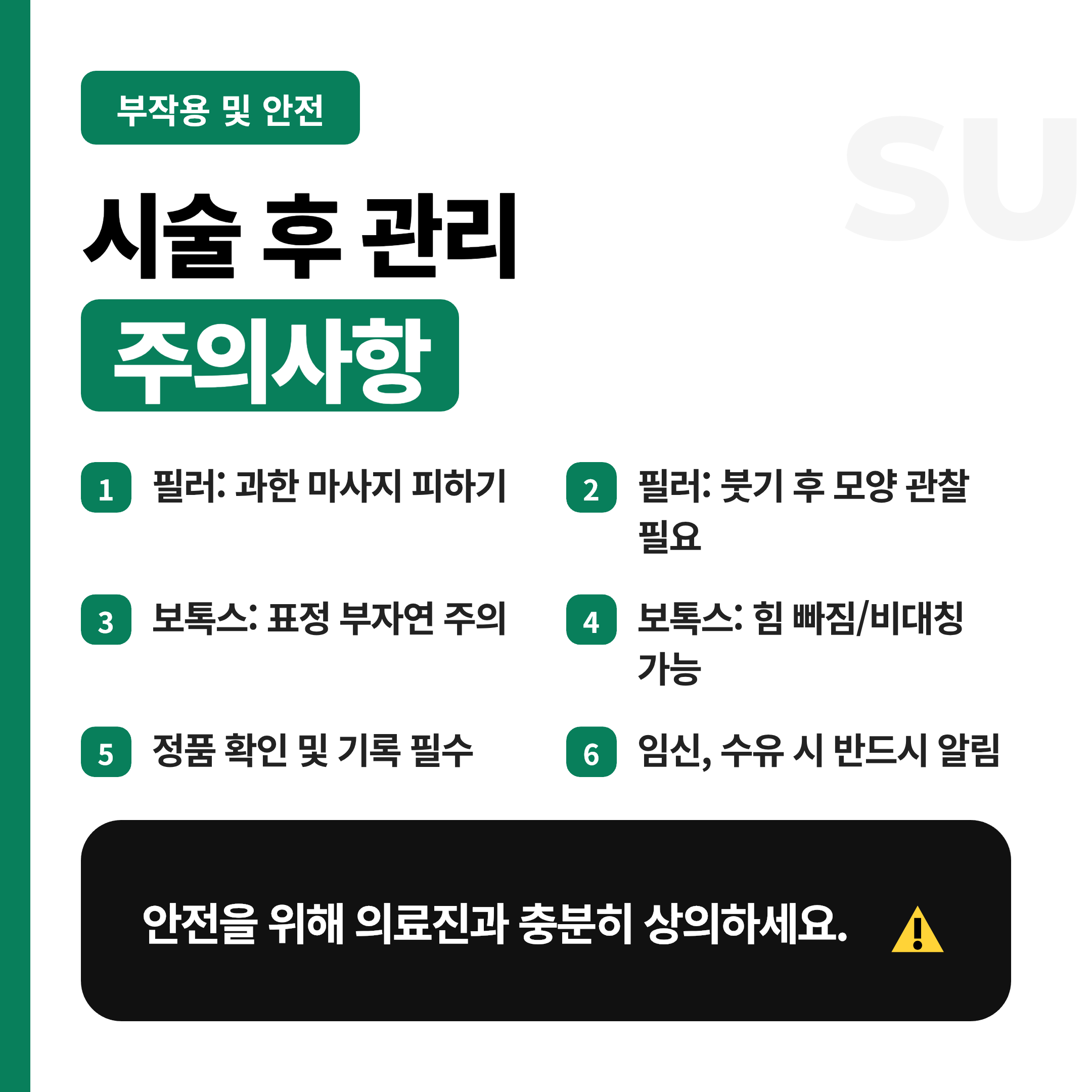 - 정품 확인과 시술 기록을 꼼꼼히 남겨요