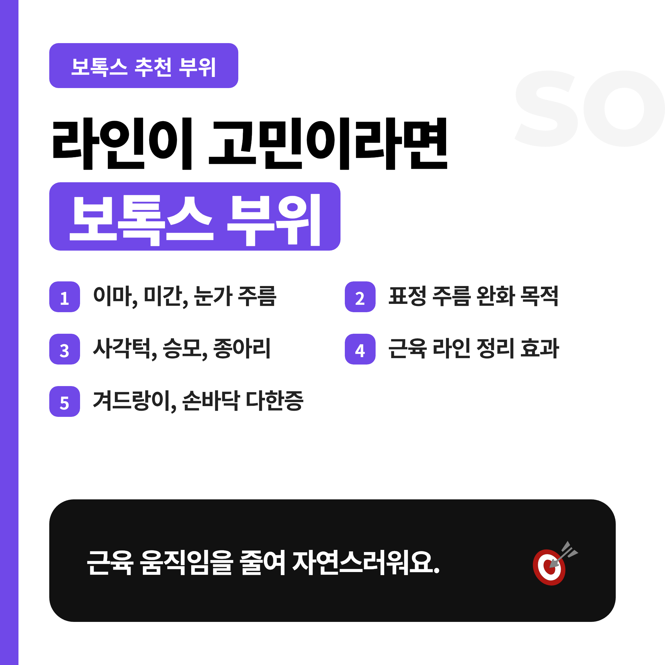 - 사각턱, 승모, 종아리처럼 근육 라인이 두드러지는 부위